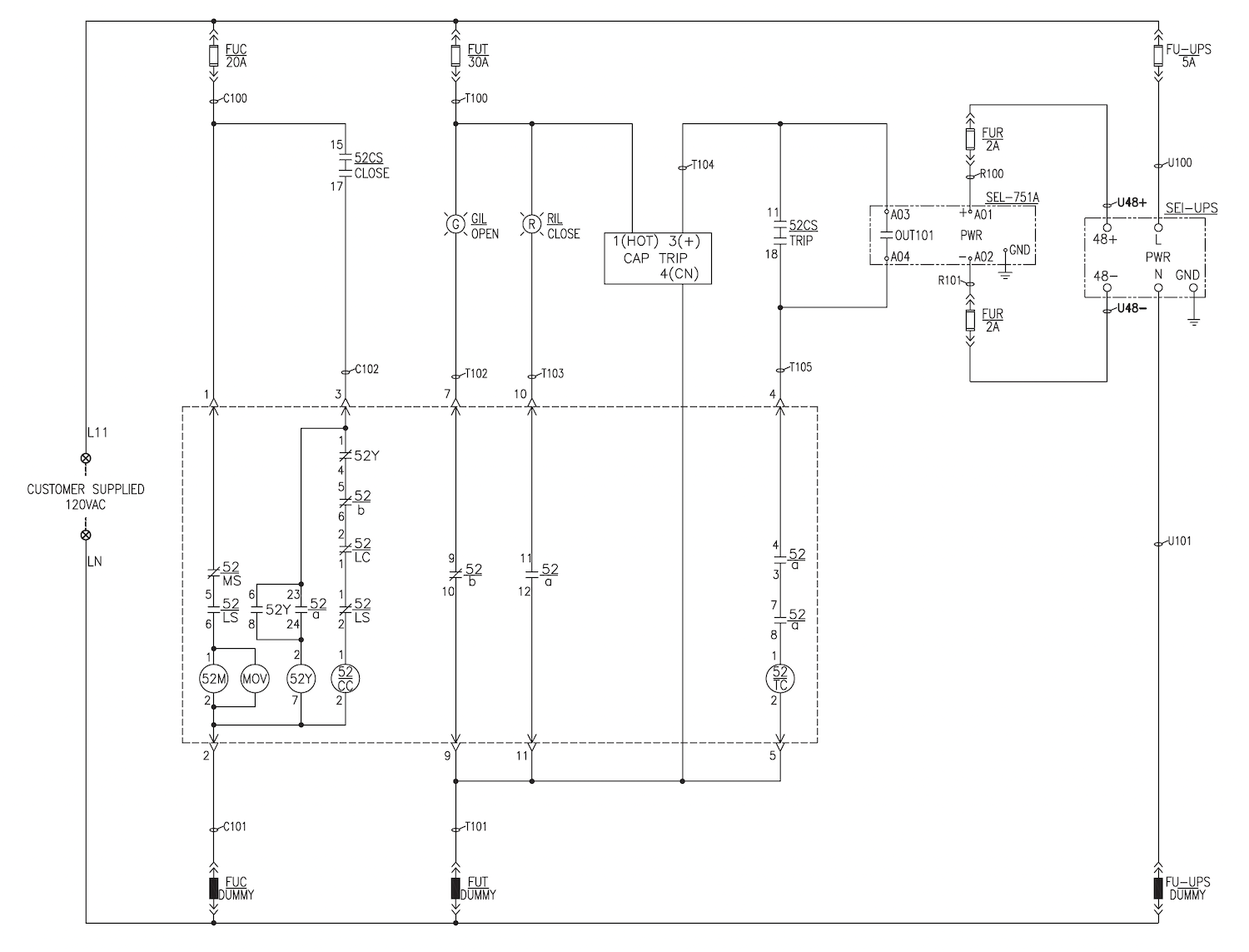 Anti-Pump Relay: OPEN (O) and CLOSED (|) in the event that a trip signal is also present. The anti-pump relay performs this function by allowing the closing coil to activate only if: • the circuit is energized, • the closing springs are fully charged, and • the spring charging motor is de-energized. The anti-pump relay activates when the close circuit is energized while the circuit breaker is closed. If the close circuit is energized continuously, the anti-pump relay will remain in the energized position after the 52/a auxiliary contact closes during the closing operation. When the anti-pump relay is energized, a pair of its normally-closed contacts, in series with the close coil, will open to ensure that the close coil cannot be energized. The close coil activates only when the close circuit is de-energized (de-energizing the anti-pump relay), then energized again.